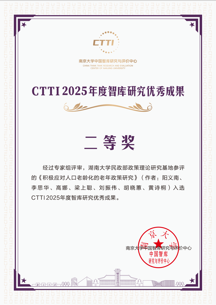 民政部政策理论研究基地”提交的二项成果,获评“CTTI2025年度智库研究优秀成果”二等奖。