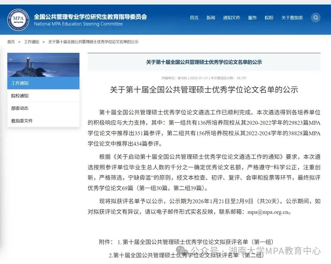 优秀专业学位硕士论文”(2024)、“湖南省优秀硕士学位论文”(2025)、“第十届全国公共管理硕士优秀学位论文”(2026)。